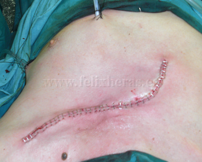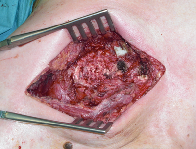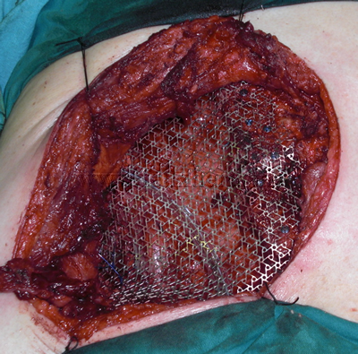 Reconstrucción con malla de titanio y mioplastia con los músculos pectorales